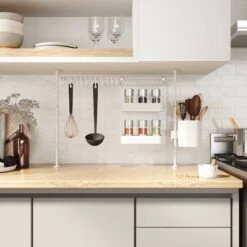 - Égouttoir en bambou et métal chromé