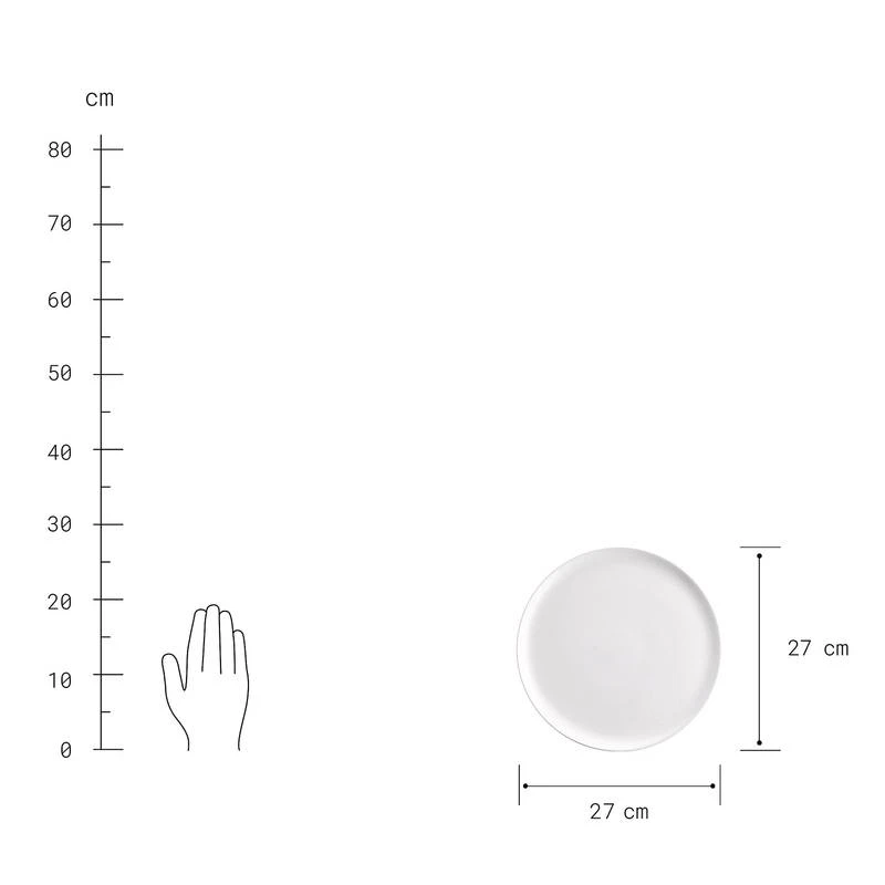 - Autres dimensions : Assiette plate : Ø 27 cm / Hauteur : 2,5 cm